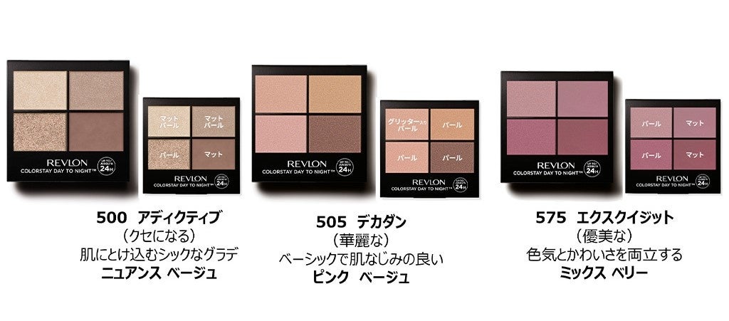 レブロン株式会社は、ロングセラーな4色アイシャドウ『レブロン カラーステイ デイ トゥ ナイト アイシャドウ クアッド』から透明感を引き出すラベンダーカラーの「セダクティブ(530)」と、エアリーな付け心地が人気のマットリップ『レブロン カラーステイ スウェード インク リップスティック』から秋冬メイクを格上げするようなモ-ヴカラー「ノー ルールズ(002)」「ピュア タレント(004)」「パワー トリップ(012)」を2024年11月18日(月)に数量限定で発売いたします。