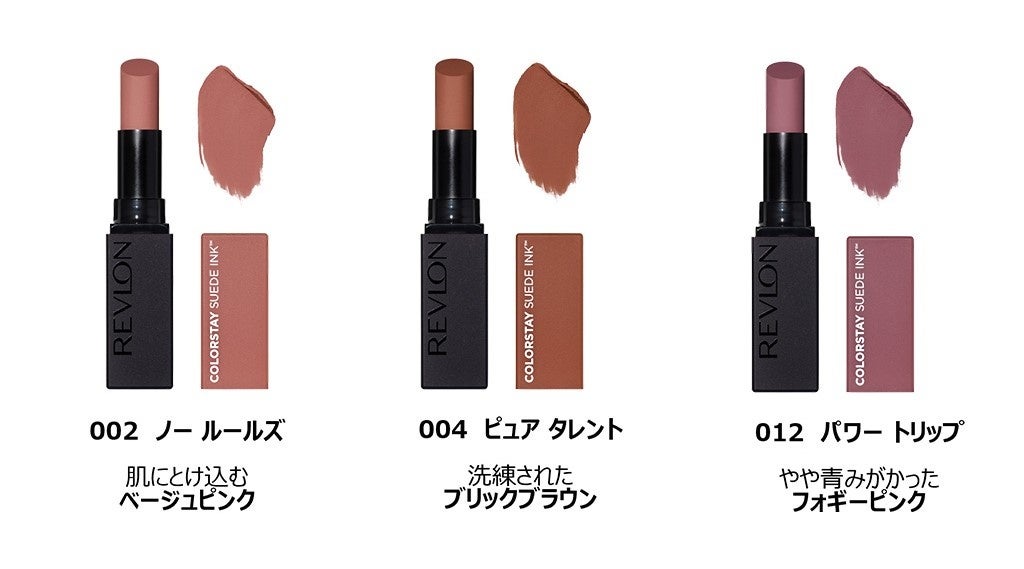 同時発売の、8時間*2落ちにくくエアリーで軽い着け心地が特長のマットリップ『レブロンカラーステイ スウェード インク リップスティック』からモーヴカラーで秋冬の唇を魅了させる限定3色が登場。指で優しくトントン広げてラフに塗るとお洒落感を漂わせるメイクが完成。