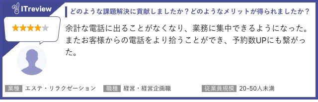 「トビラフォン Cloud」は「ITreview」で平均顧客満足度4.2を獲得しています(2025年1月16日時点 75レビュー)。当製品のご利用者様から実際に寄せられたレビューを一部ご紹介します。