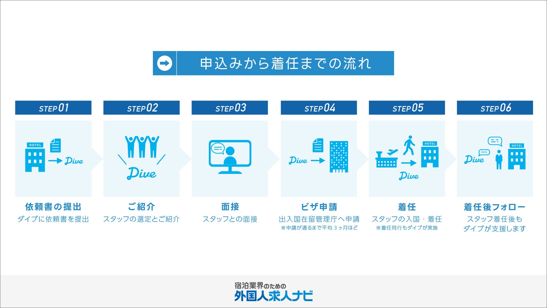 ダイブはこのキャンペーンを通して約100施設の外国人雇用の採用を目指します。