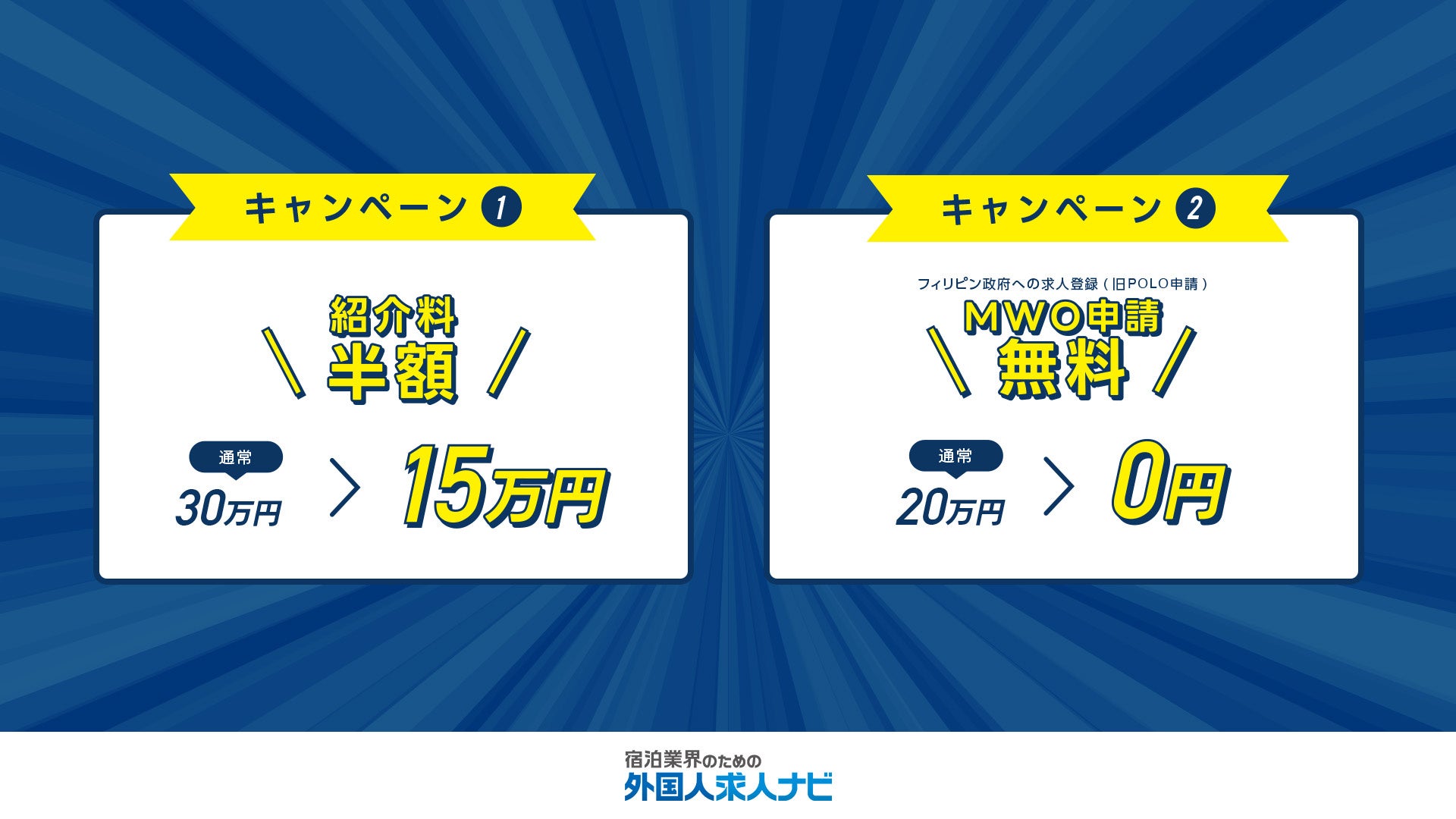 ▼キャンペーン概要:通常20万円のフィリピン政府への求人登録( 旧POLO申請)の手数料が、対象期間中は無料!