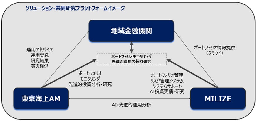 伝統資産およびオルタナティブ資産での幅広い資産運用技術を持つ東京海上AMと、金融工学やフィンテックツールに強みを持つMILIZEが共同で、地域金融機関向けに以下のサービスの提供を進めて参ります。