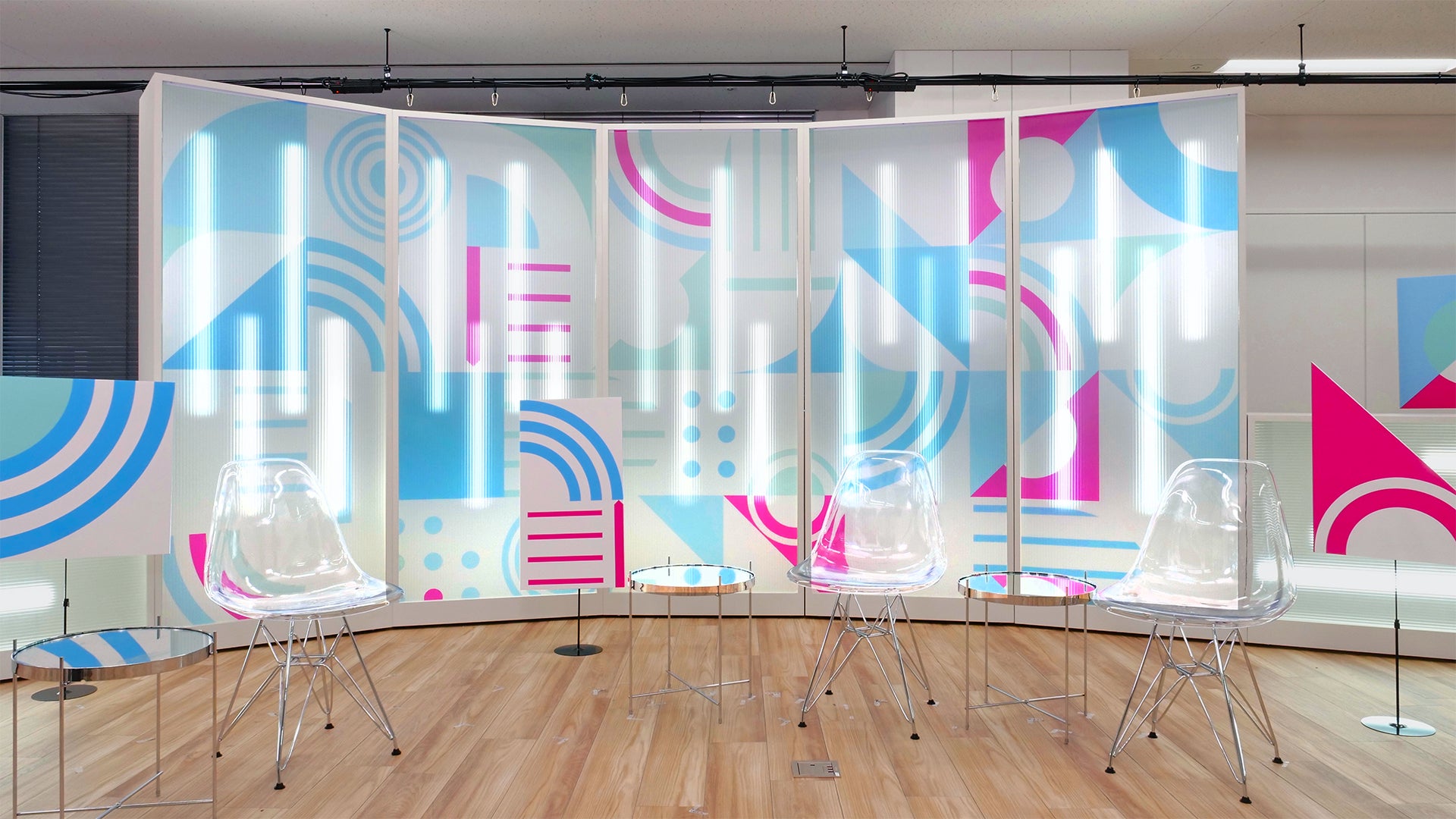 今回の番組内容の刷新を機に、メインビジュアルおよび撮影スタジオもリニューアルいたしました。働くことに対して「多様性」と「発見」を感じさせるデザインを基調とし、今まで以上に幅広い学生の方から気軽に見ていただける世界観づくりを追求しています。