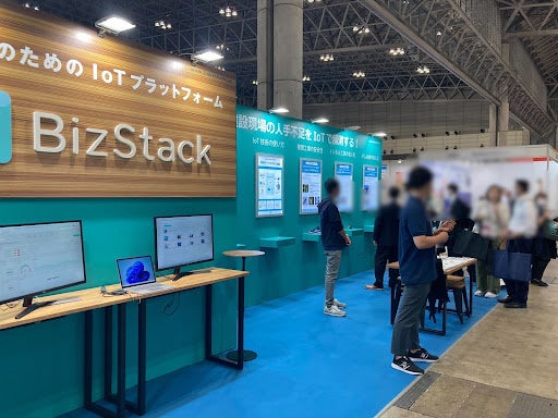 今回の展示では、様々なセンサーを活用した事例パネルやBizStackのデモ画面を展示し、IoT技術を使った建設DXについてご紹介しました。