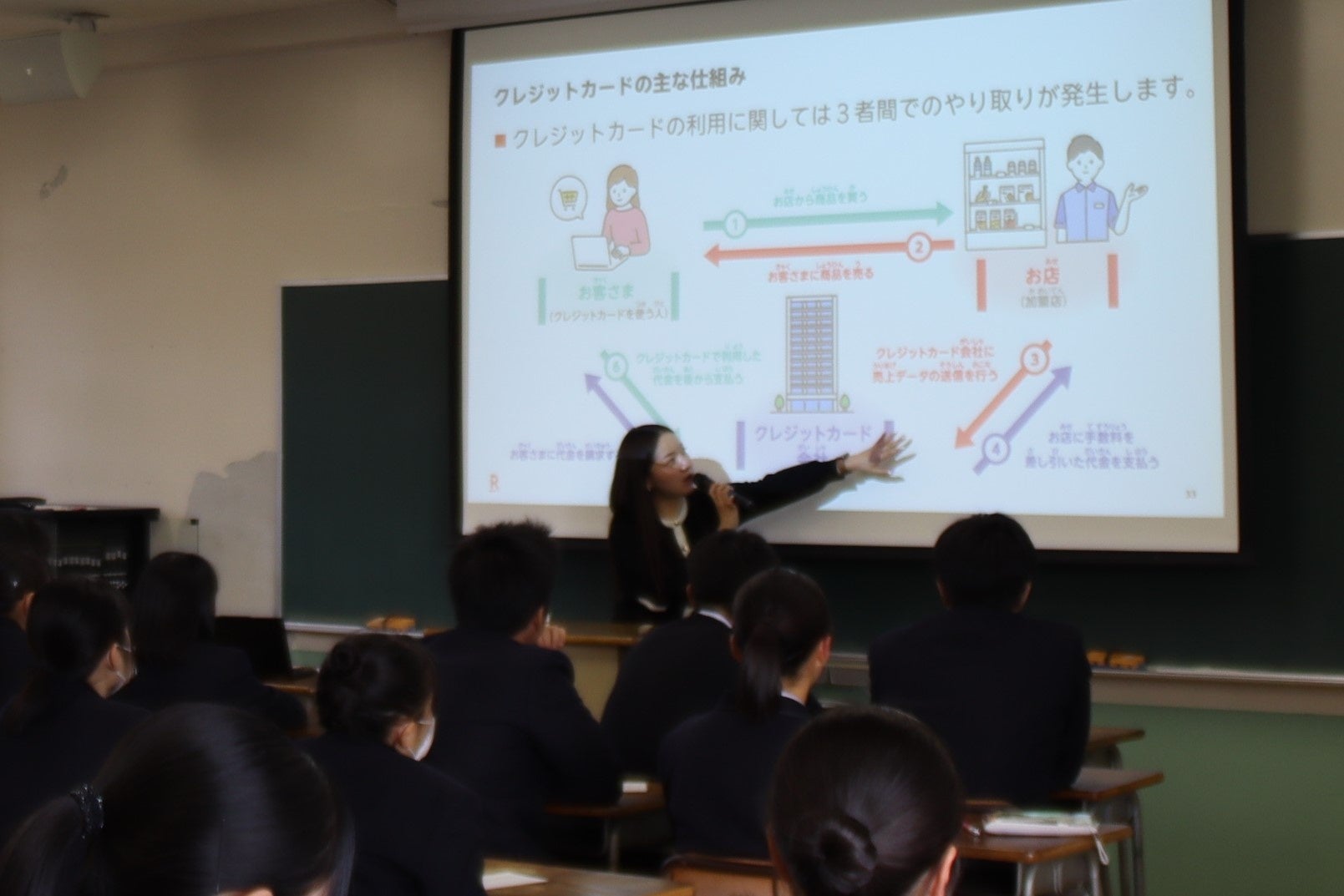 授業後、生徒からは「(クレジットカードの使い方を聞いて)正しい使い方をすれば怖くない(と思った。)こんなにデザインがあると知らなかった。」という感想がありました。