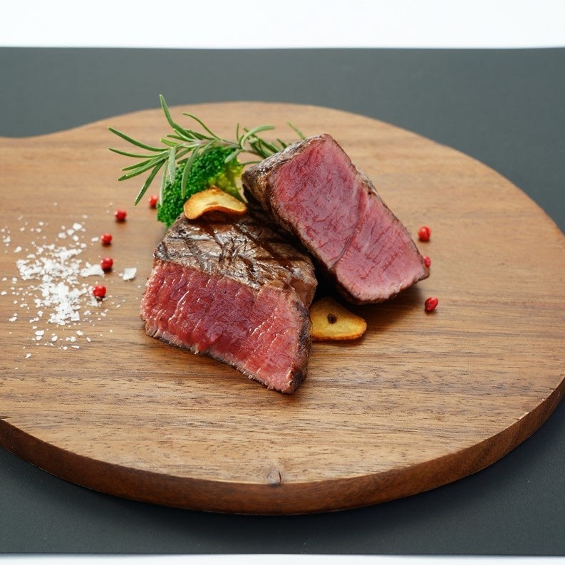 低カロリー、低脂肪でヘルシーな牧草牛から取れた最高級部位のフィレ肉は、脂身の少なさと、きめ細かく柔らかな肉質が特長。