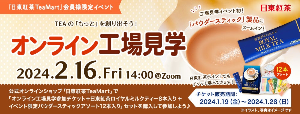 <日東紅茶TeaMart会員様限定イベント>公式オンラインショップ「日東紅茶TeaMart」でチケットを購入して参加しよう!パウダースティック製品の「オンライン工場見学」初開催決定