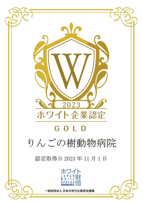 りんごの樹動物病院は2023年11月1日に「ホワイト企業認定 ゴールドランク」を取得されました!