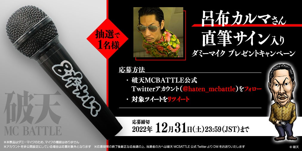 - 「呂布カルマさん直筆サイン入りダミーマイク」プレゼントキャンペーン実施中!