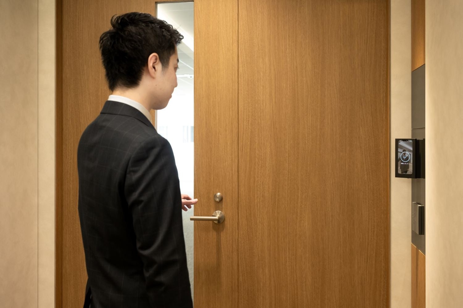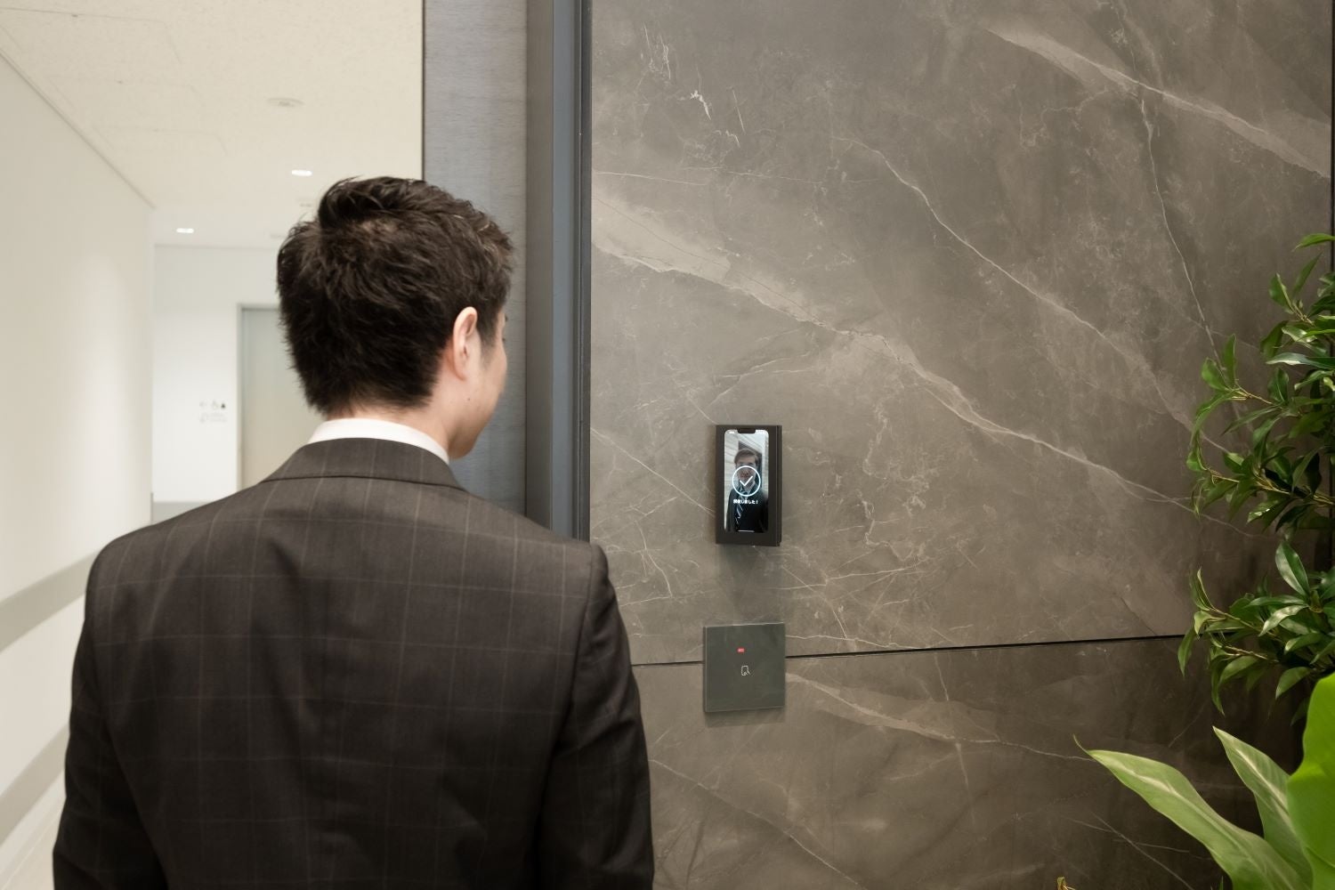 当ビルは、セキュリティドアへスマートロックと認証用端末を設置したことで、入居する全テナント企業の従業員が、顔パスで共用部や専有部へ入室可能になりました。不正入室やカード紛失などのセキュリティリスクを軽減できるほか、両手が塞がっているときでもウォークスルーで入室できます。