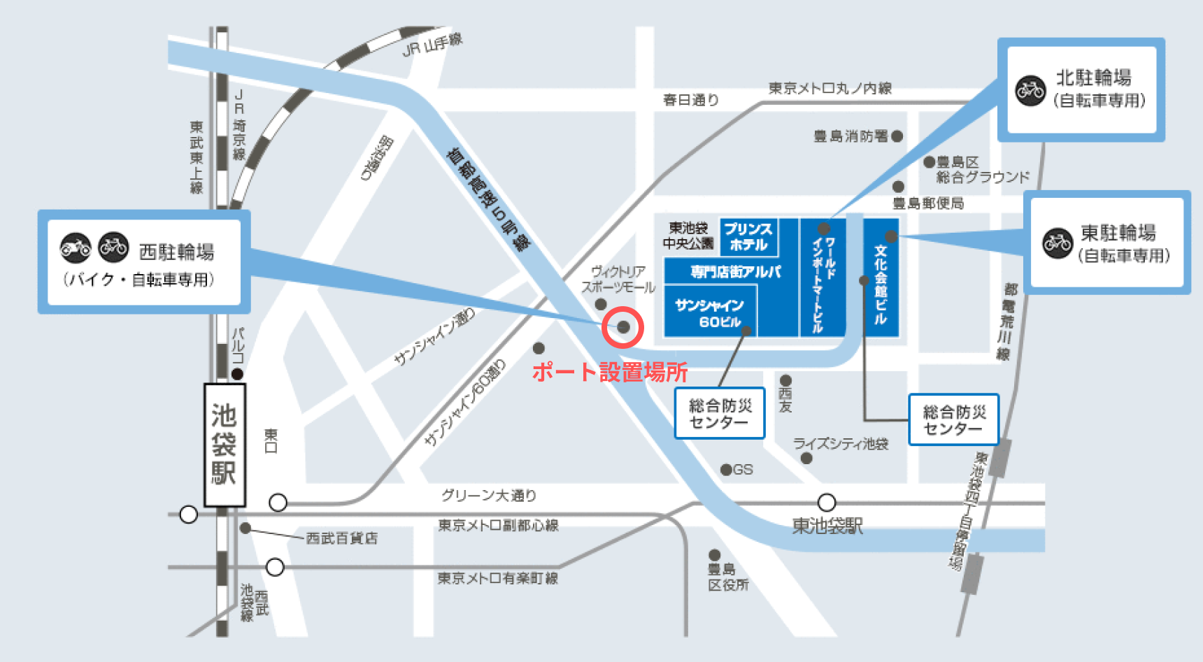 池袋エリアには、近年整備された池袋駅周辺の4つの公園(南池袋公園、中池袋公園、池袋西口公園、IKE・SUNPARK)や様々な商業施設、オフィス、ホテル、住居が広がっています。その中でサンシャインシティは、水族館・展望台などのアミューズメント施設や、アルパ・ALTAのショッピングセンターなどから成る、池袋を代表する大型複合施設です。今回、サンシャインシティにLUUPのポートを導入することにより、街の皆さまに魅力的なスポットを巡る移動手段として活用いただき、さらなる回遊性の向上を目指します。