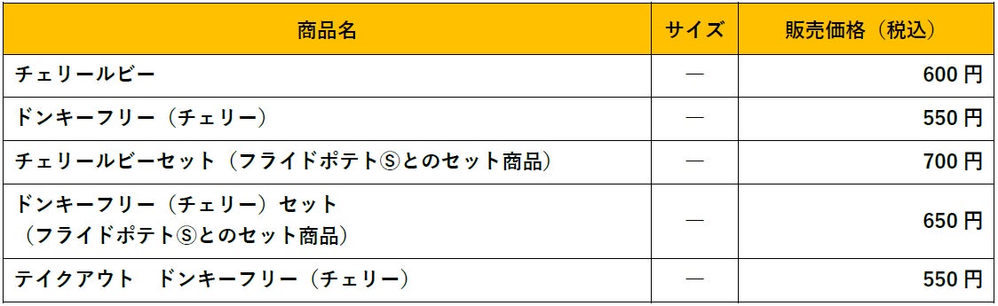 これと同時に、フライドポテトⓈを一緒に愉しめる「チェリールビーセット」と「ドンキーフリー(チェリー)セット」も登場します。