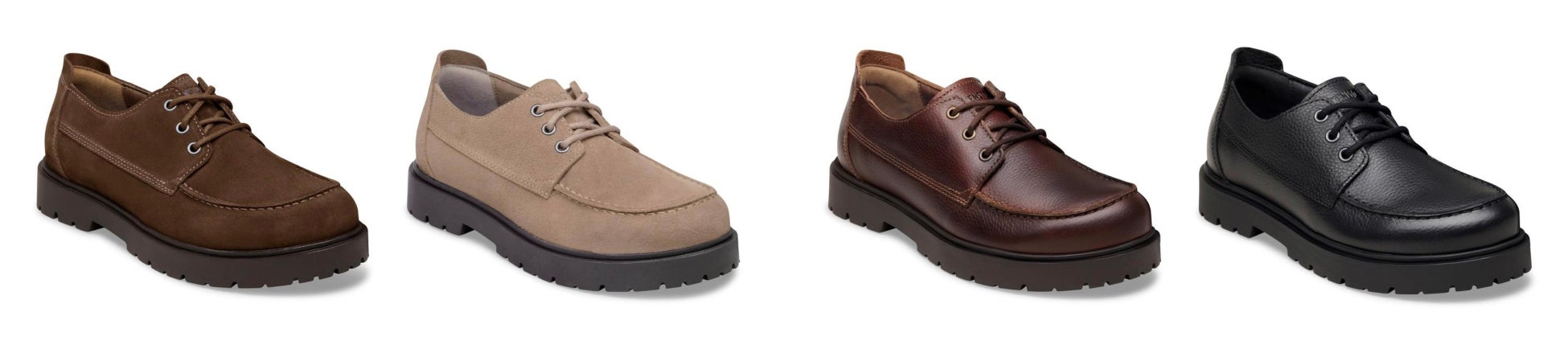 HIGHWOOD MOC LACE LOWは、BIRKENSTOCK直営店舗では2026年1月28日(水)より、公式オンラインでは2月4日(水)より発売を予定しています。スエードのカラフェとグレイトープ、グレインレザーのチョコレート、ブラックの四つのバリエーションで展開いたします。