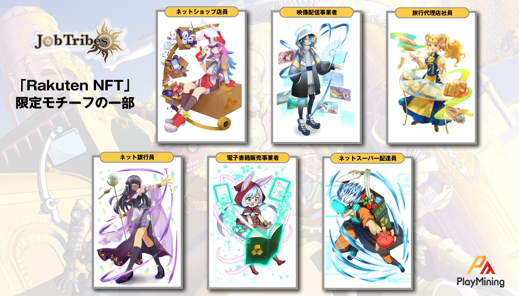 「PlayMining」のNFTカードバトルゲーム『JobTribes』で使用可能なゲームアイテムNFTがもらえる静止画NFT