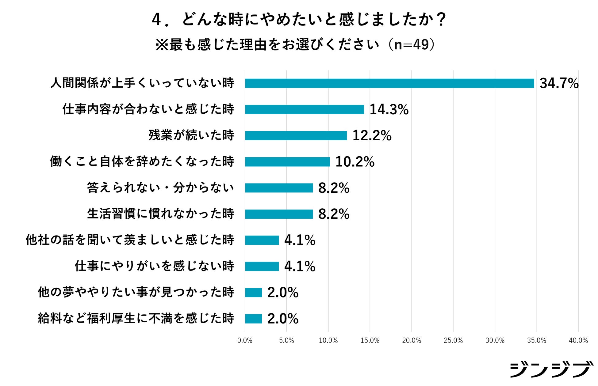4.どんな時にやめたいと感じましたか? ※最も感じた理由をお選びください(n=49)