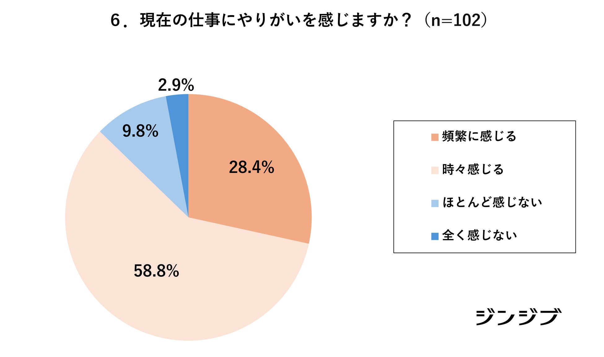 6.現在の仕事にやりがいを感じますか?(n=102)