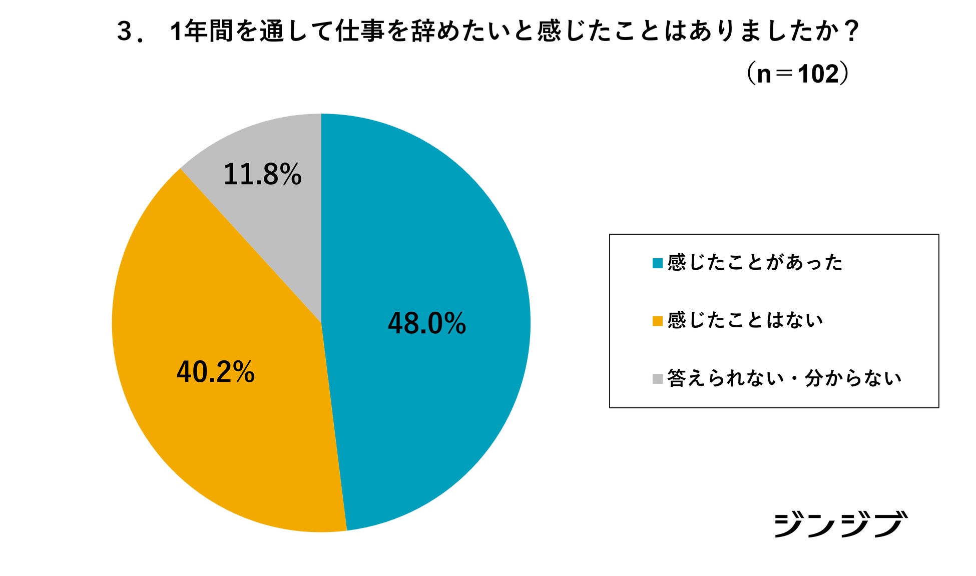 3.1年間を通して仕事を辞めたいと感じたことはありましたか?(n=102)
