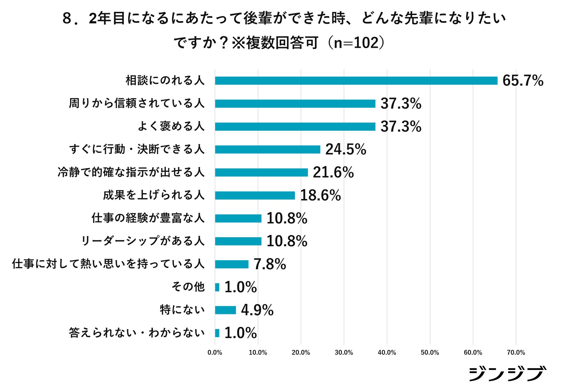8.2年目になるにあたって後輩ができた時、どんな先輩になりたいですか?※複数回答可(n=102)