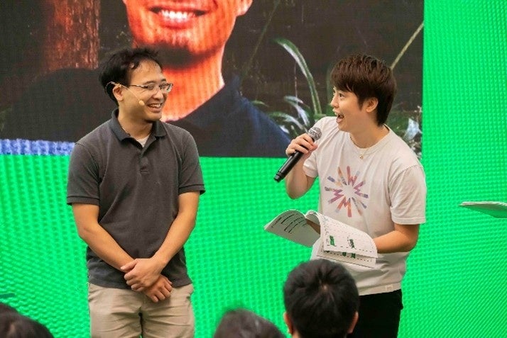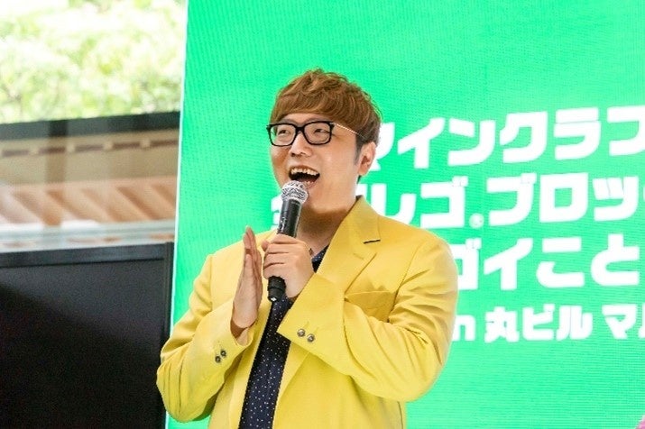 抽選で当選されたご家族をご招待した本イベント。イベント冒頭では、ご自身も動画クリエイターであり、HIKAKINさん・SEIKINさんと10年以上のお付き合いのあるMasuoさんがMCとしてご登場。続いて、レゴ®マインクラフト 大型ジオラマの製作を担当したレゴ®認定プロビルダーの三井淳平さんがご登場し「マインクラフトの世界を再現するためにゲームを100時間ちかくプレイしました」と製作時のエピソードを語っていただきました。
