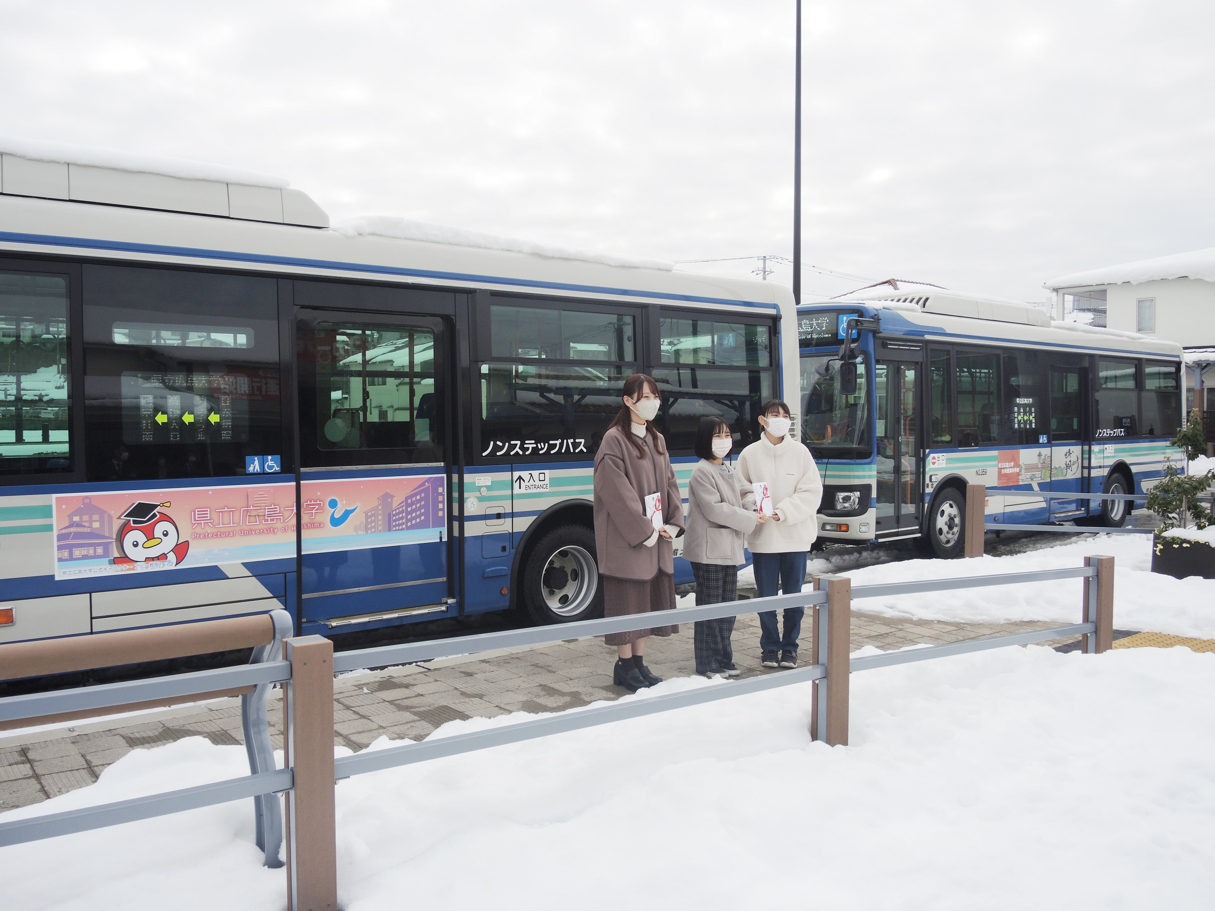 【県立広島大学】庄原キャンパスの学生が備北交通バスの広告をデザイン!発車記念式典が開催されました