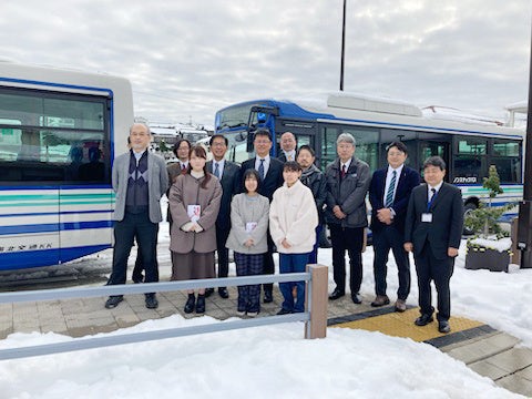 県立広島大学(学長 森永 力,広島県庄原市)生命環境学部及び総合学術研究科の学生が備北交通株式会社( 代表取締役 山根 英徳 ,広島県庄原市)の路線バスの広告をデザインしました。2022年12月27日(火),備後庄原駅において,学生がデザインしたバスの発車記念式典が開催されました。