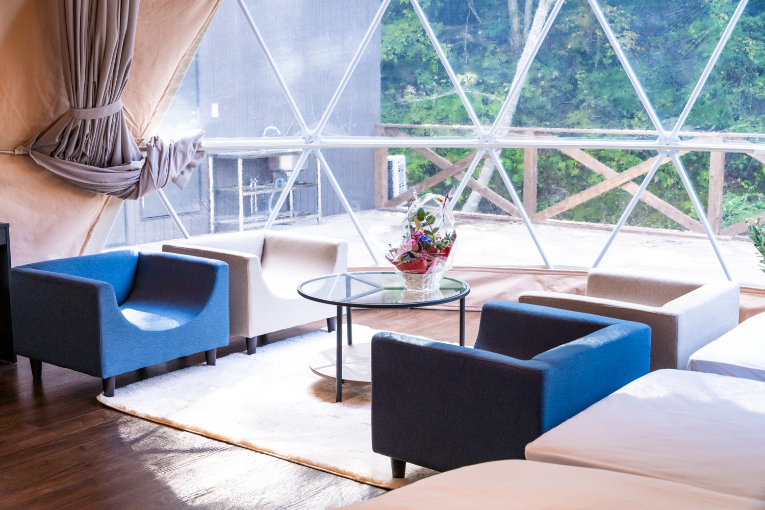 緑があふれる森の中、清流を臨むグランピングでラグジュアリーアウトドア体験をお過ごしください。