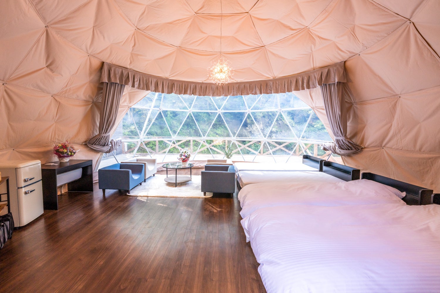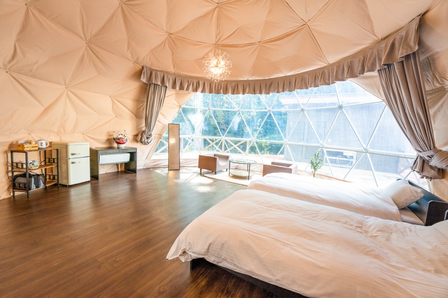 東京都内から車で90分とアクセスも良く、ハイキング、サイクリングコースとしても知られる埼玉県秩父市・定峰峠の秩父定峰清流キャンプ場内に、1日3棟限定のドーム型グランピングが誕生しました。