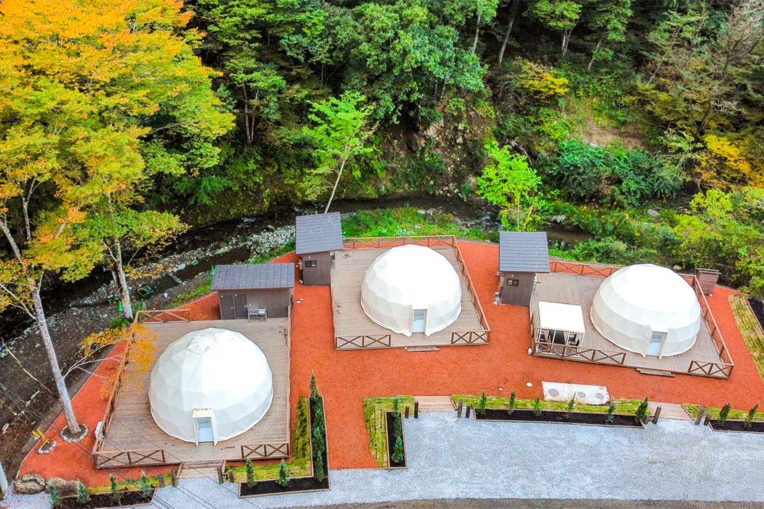 秩父・定峰峠に位置する清流を臨むドーム型グランピング