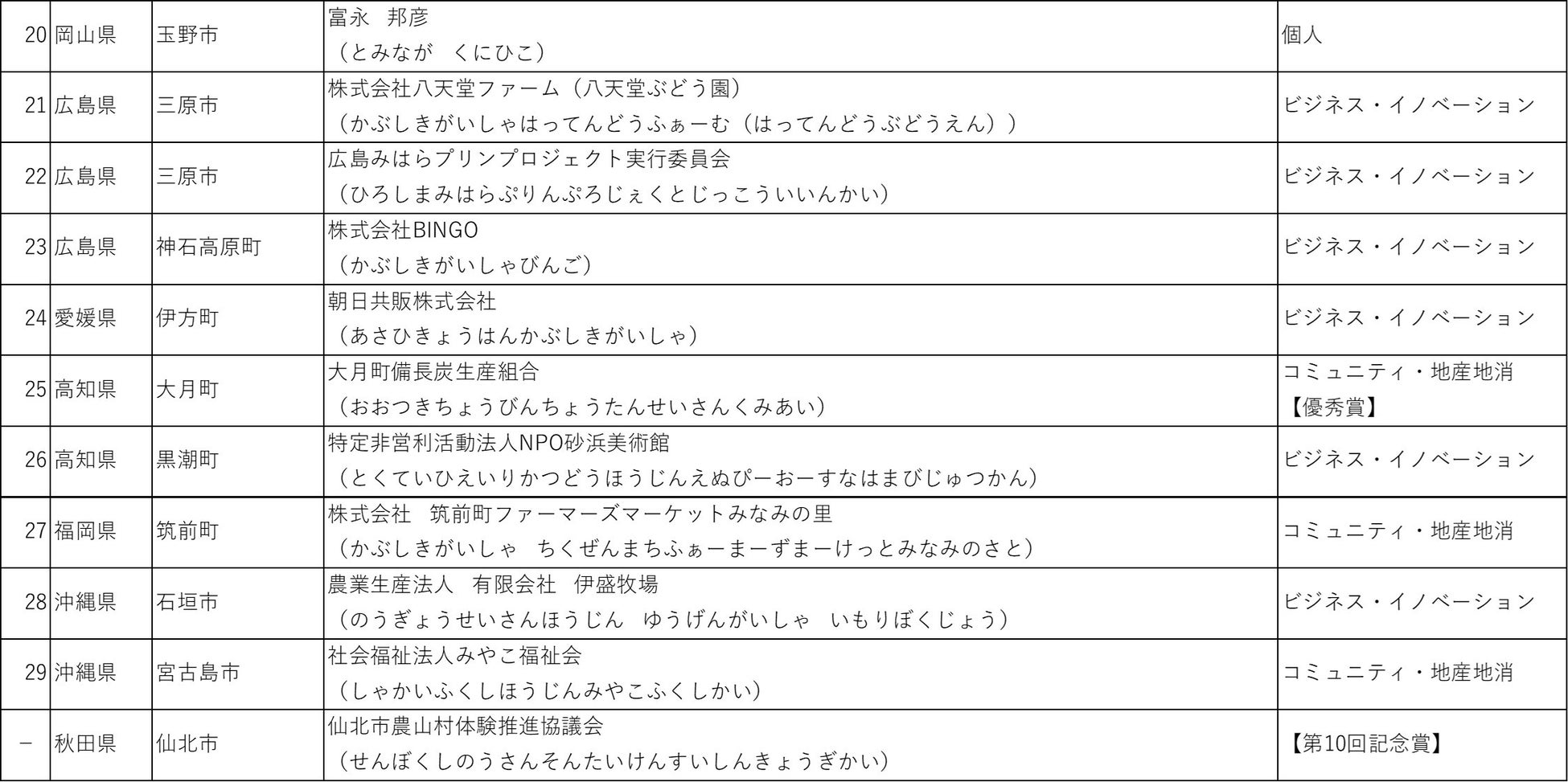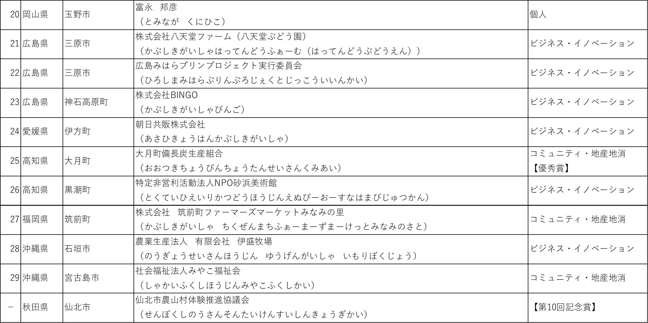 今後、総理大臣官邸において「ディスカバー農山漁村(むら)の宝」(第10回選定)の交流会を開催する予定です。