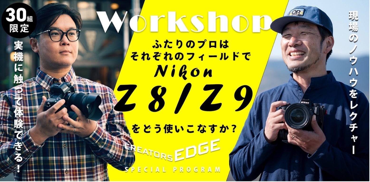 ニコンZ 9、Z 8 を実際に現場で活用する井上卓郎さん(映像家)と、上田晃司さん(フォトグラファー・映像作家)のワークショップ。同社の出展社セミナーの内容をより深掘りしていきます。参加者は実際にカメラを手に取って、体験できます。30組・60名様限定。