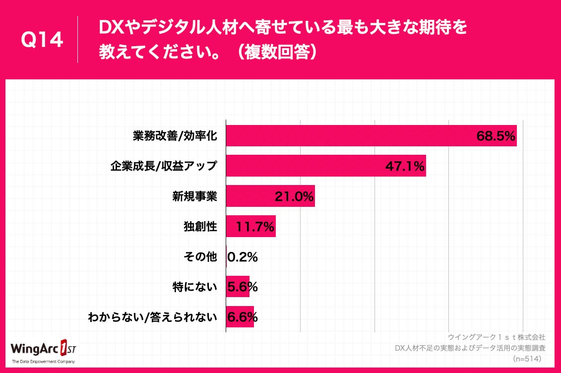 14.デジタル人材へ寄せている期待、「業務改善/効率化」が約7割で最多に