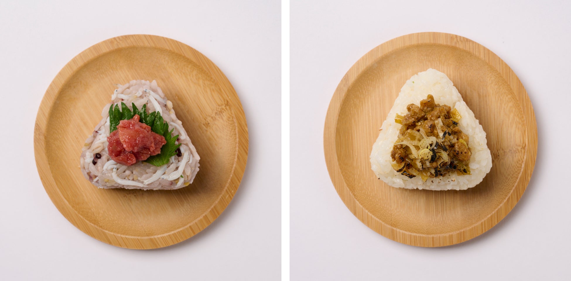 左)九十九里の天然塩の多古米贅沢塩おにぎり