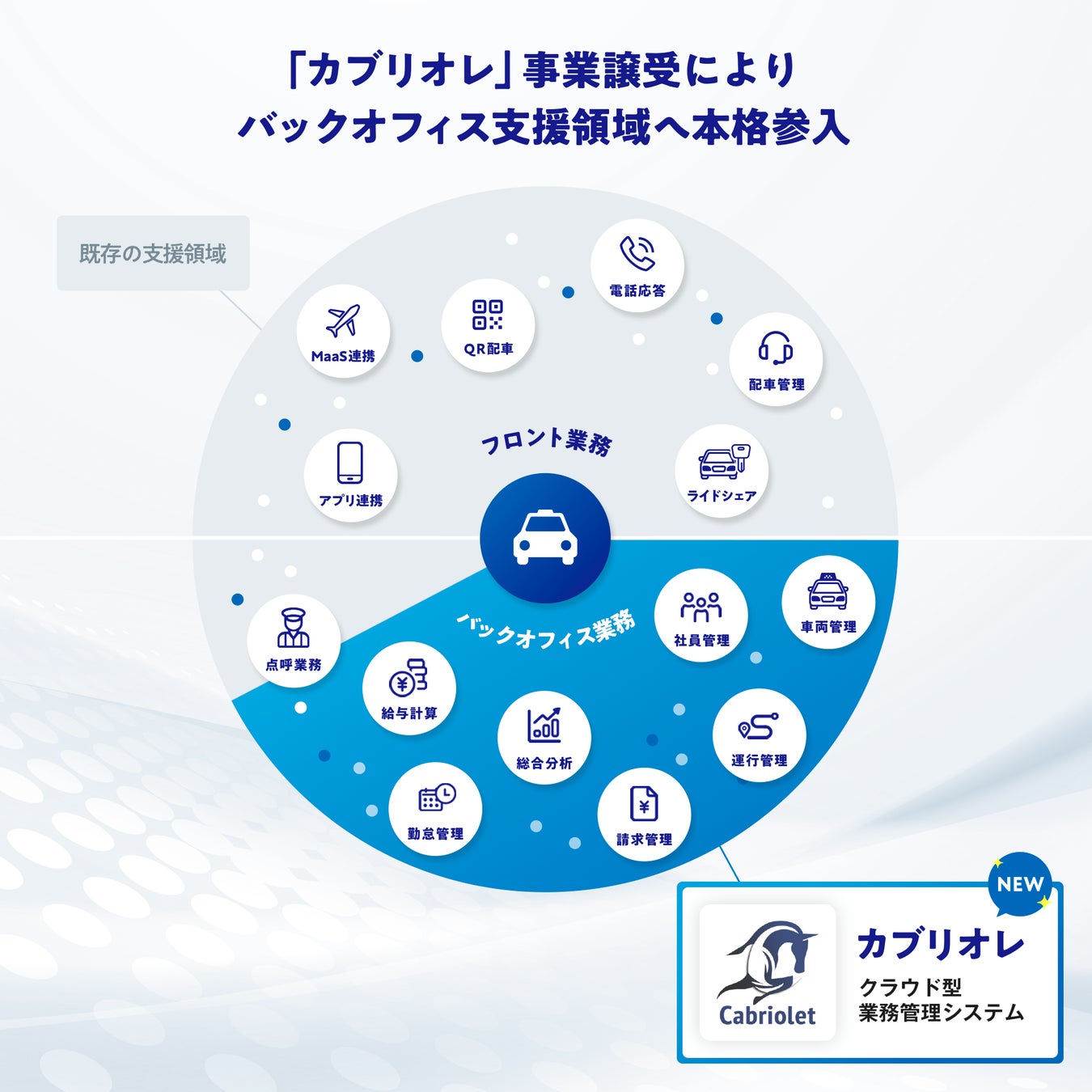 その第1弾として、労務・業務管理分野で確かな知見と実績を持つWELLCAB JAPANの「カブリオレ」事業を譲り受けます。円田社長および同事業の従業員の皆さまを当社の一員として迎え入れ、これまで培われた知見を引き続き発揮いただきます。今後、配車・集客・点呼に加え、労務・業務管理までを見通した支援を強化し、現場の負担軽減と経営の見える化を一層進めていきます。当社は今後も、タクシー業界全体の活性化につながる事業づくりを続け、これまで以上のスピードと実装力で業界自体の成長へ貢献してまいります。
