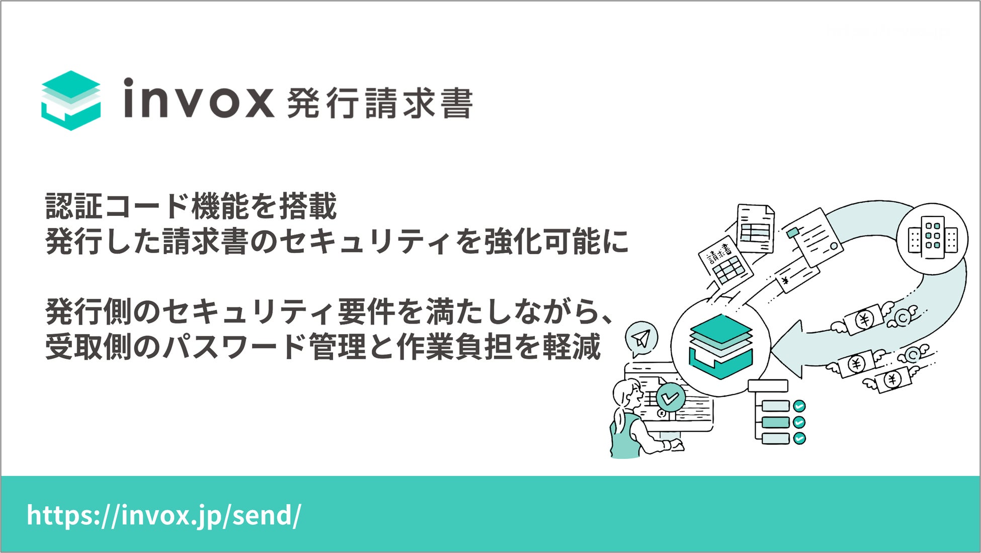 株式会社invox(本社:東京都新宿区、代表取締役:横井 朗、以下「当社」)が開発・運営する「invox発行請求書」に認証コード機能を搭載し、請求書をダウンロードする際に認証コードを設定できるようになりました。