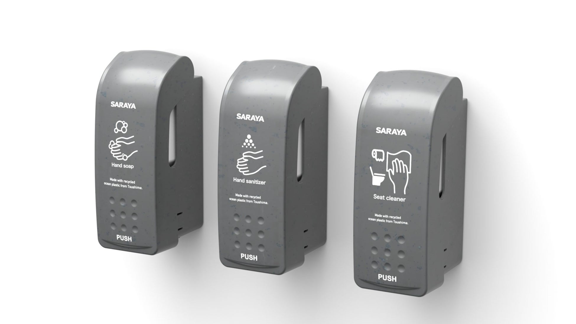 サラヤでは、今後も海洋ブラスチックごみを再利用した製品の開発をはじめ、人と地球にやさしい製品づくりを通じて、世界の「衛生・環境・健康」に貢献してまいります。