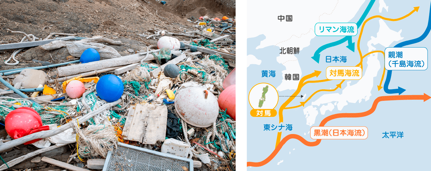 特に長崎県対馬市では、地形や潮流の影響により年間3万立方メートル以上の漂着ごみが押し寄せ、国際的にも海洋ごみのホットスポットとして知られています。しかし、大量に漂着するごみのうち回収できるのは約4分の1程度にとどまり、さらにリサイクルできるのはその一部に限られます。再資源化できなかったごみは、埋め立てや焼却処分を余儀なくされているのが現状です。