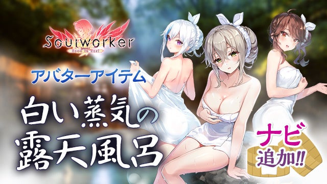 アニメ⾵オンラインRPG「ソウルワーカー」白い蒸気の露天風呂シリーズにナビ追加!