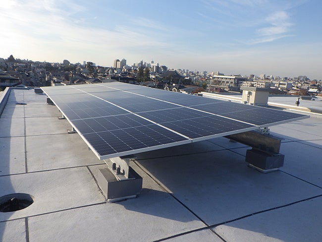 環境に配慮した再生エネルギーを活用するため、屋上に太陽光発電設備を導入しており、共用部分の電力のほか、停電時の一部共用設備へ電力を供給することができます。また、電気自動車充電設備は4区画分設置し、将来全区画に設置可能な予備配管を設置しています。