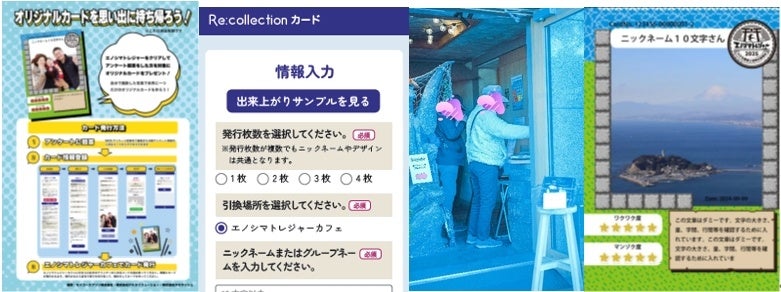本実証事業は、エノシマトレジャー・イベントに参加する参加者が、自らのスマートフォンで撮影した写真や参加時の感想、感動値などを特設スマートフォンサイトから自ら投稿します。また特設コーナーに設置されたプリンター機器よりオンデマンドにてトレーディングカードサイズにできる印画紙へプリントし受け取ることができる内容となっています。その場で世界にひとつだけのオリジナルカードを受け取ることができることに対する付加価値を図る狙いがあります。