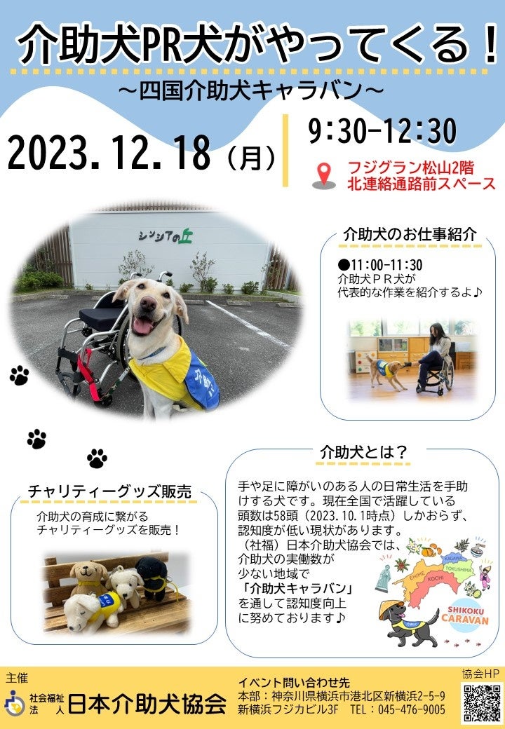 ●社会福祉法人 日本介助犬協会(以下、協会)主催の四国地方にて介助犬の啓発活動を行う「四国介助犬キャラバン」の一環として実施される。