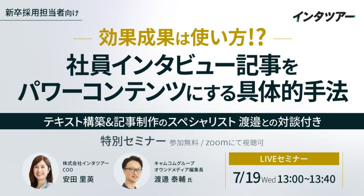 【新卒採用担当向け】潜在層へのアプローチに革命を!社員インタビュー記事をパワーコンテンツにする具体的手法を徹底解説|インタツアー