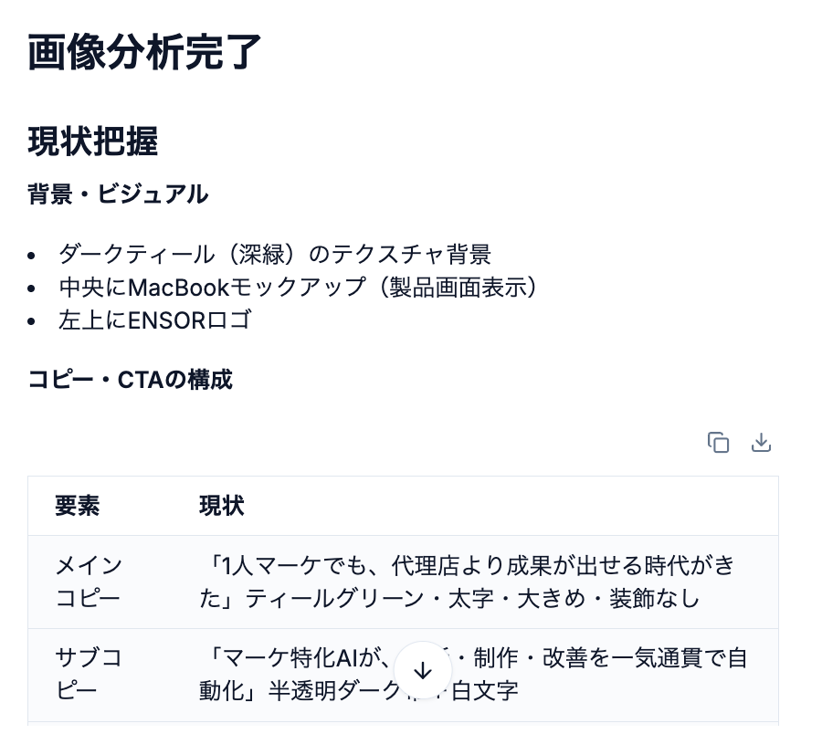ラフ作成:ブランド理解済みAIとの対話で、最適な訴求軸とコピーを生成