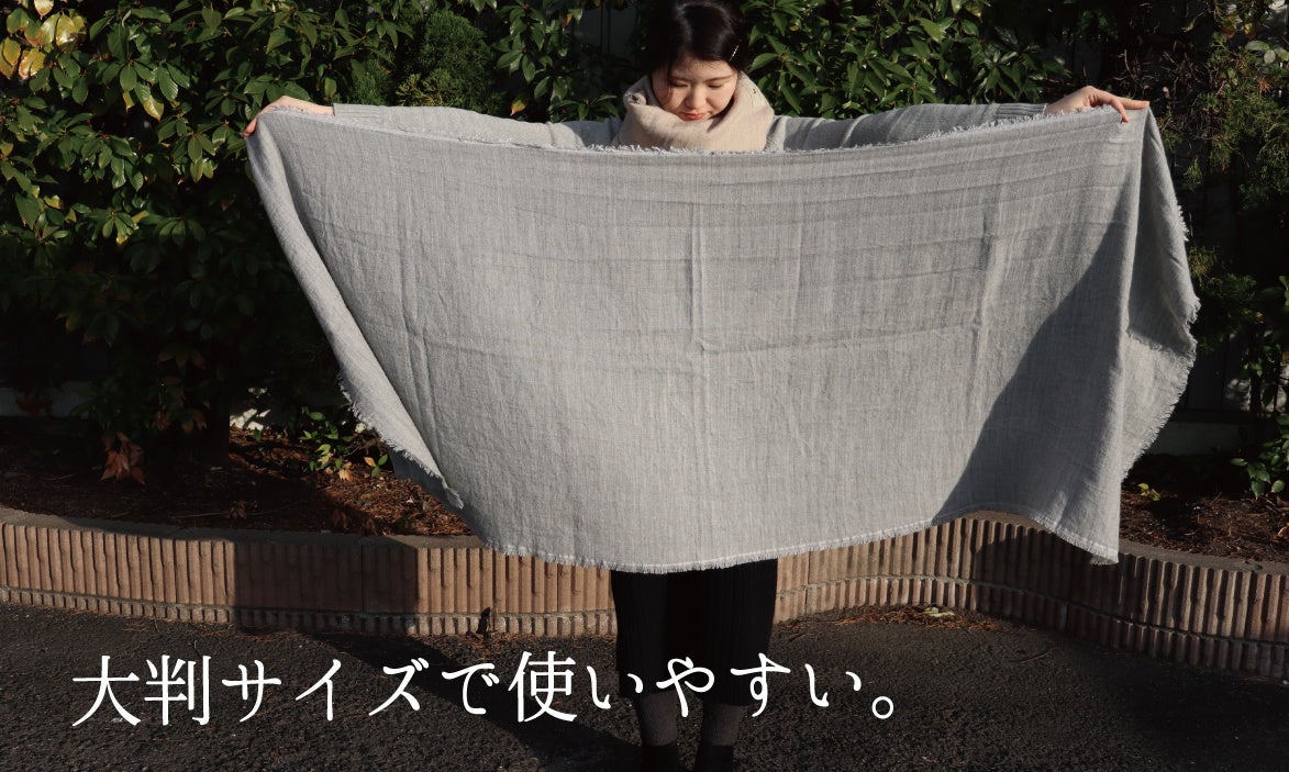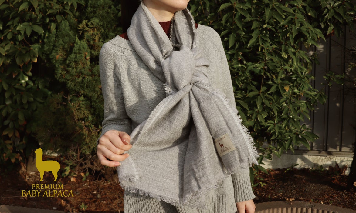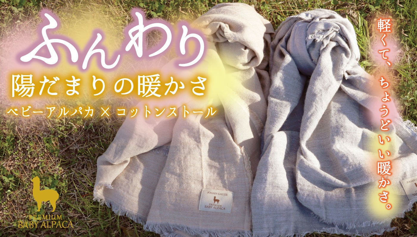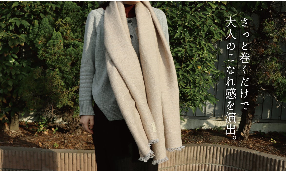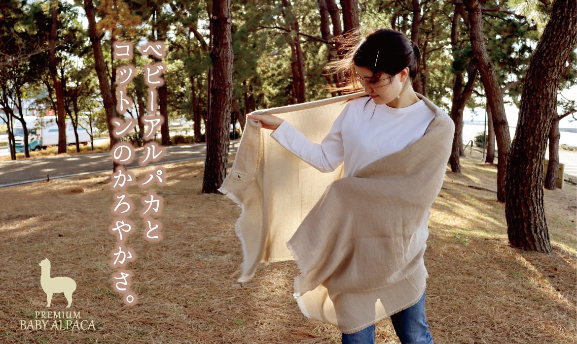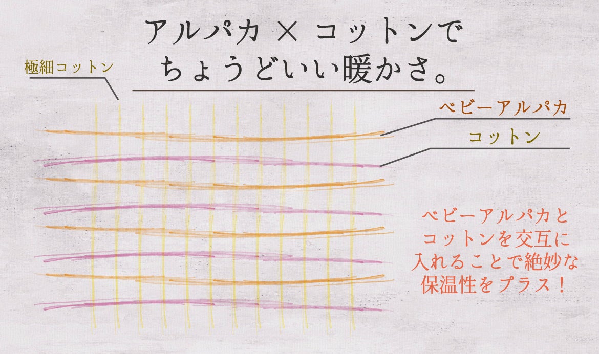 ベビーアルパカストールに、極細コットンを織り込み、柔らかさとほどよい暖かさを実現