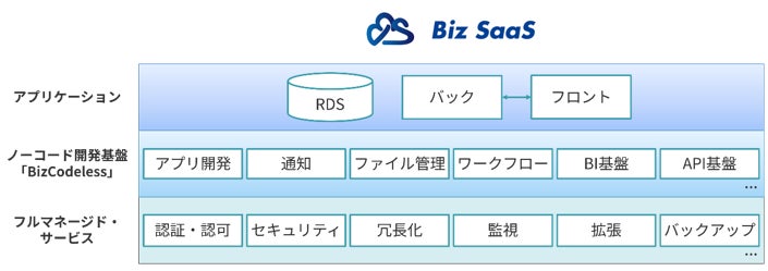 この度、富士ソフトは株式会社システムインテグレータと共同出資による新会社、「株式会社BizSaaS」を設立し、BizSaaSの製品開発を本格的に開始します。BizSaaSとは、中堅・大企業を主な対象としたクラウドネイティブなERPです。株式会社システムインテグレータが独自開発した業務専用ノーコード開発基盤「BizCodeless」を中核に据え、基盤上に、業界・業種ごとの実務に即した業務アプリケーションを構築・展開します。