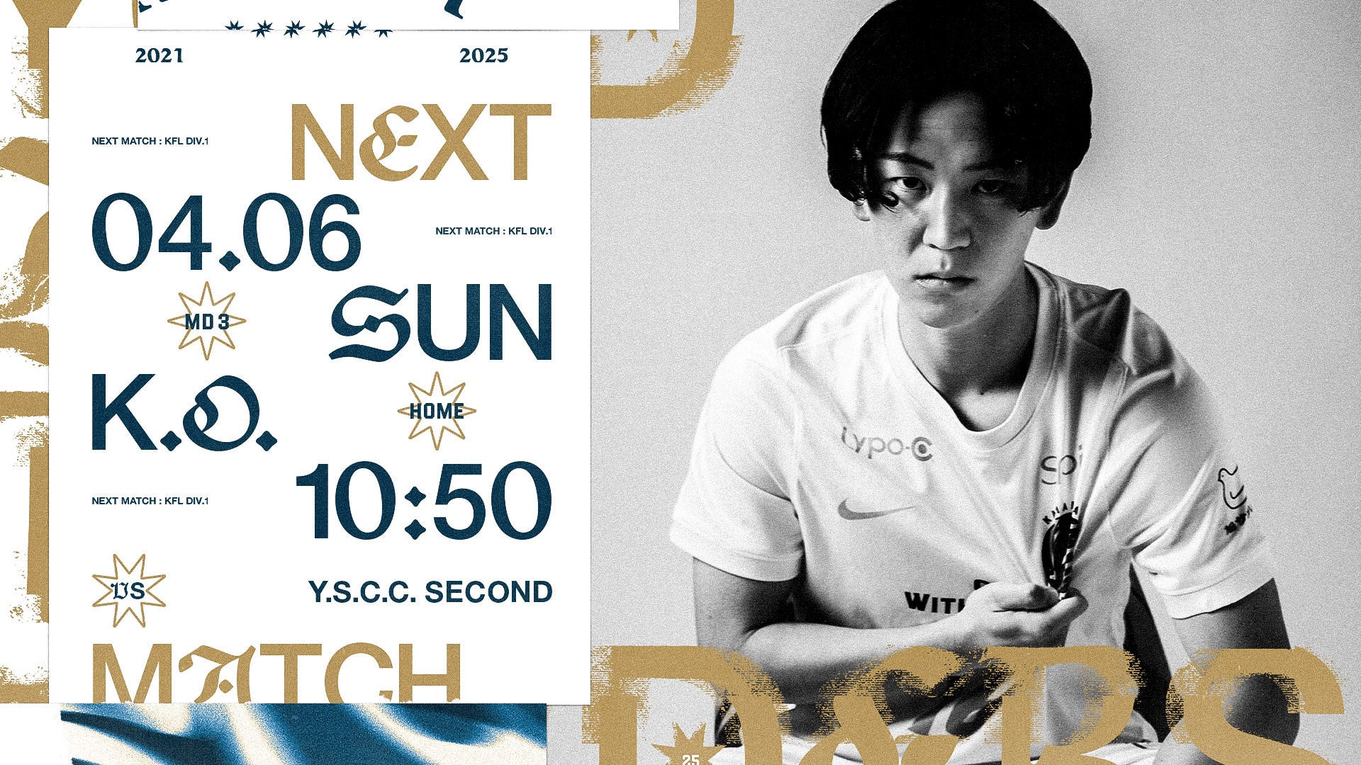 4月6日(日)2025神奈川県社会人サッカーリーグ1部第3節 supported by 株式会社ゴールドクレスト 開催のお知らせ【vs Y.S.C.C.セカンド】