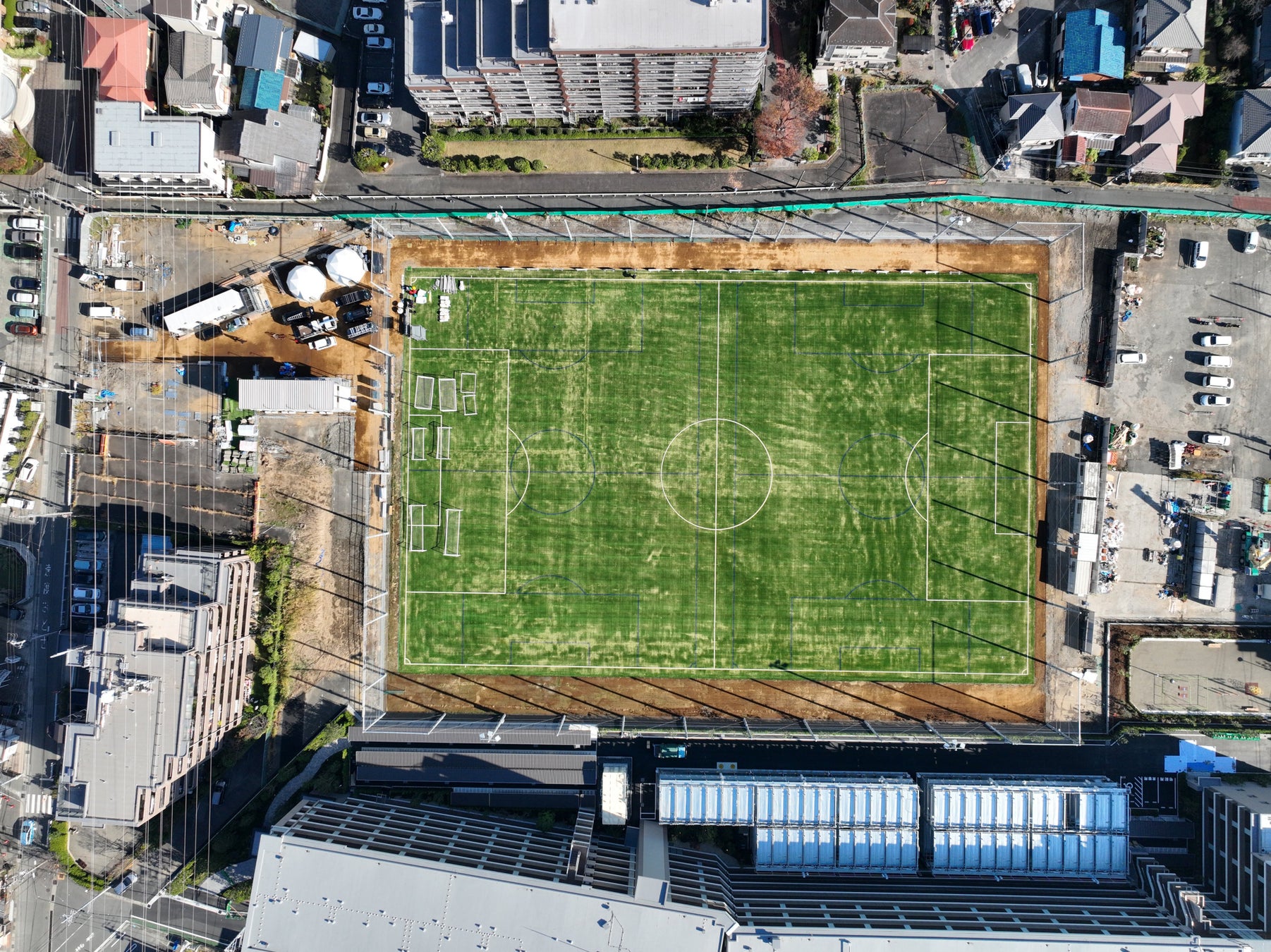 そして、ついに2025年1月、第二のスタジアムである『ゴールドクレストスタジアム鎌倉』がオープン。観戦スペースの拡大、更衣室・女子用トイレの増設など、前スタジアムから得た経験を活かし様々な改善を実施。また、利用者に安心してケガリスクの少ないスポーツ利用をしていただけるよう、人工芝を全面張り替えいたしました。