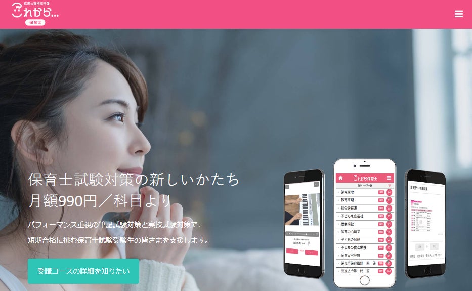 京進が長年教育現場で培ってきたノウハウを活かした、eラーニングによる保育士試験対策講座や保育士のスキルアップ講座を行うサービスです。受講生に対して資格取得までの学習支援、および、保育の現場で働くまでの就労支援を行っています。