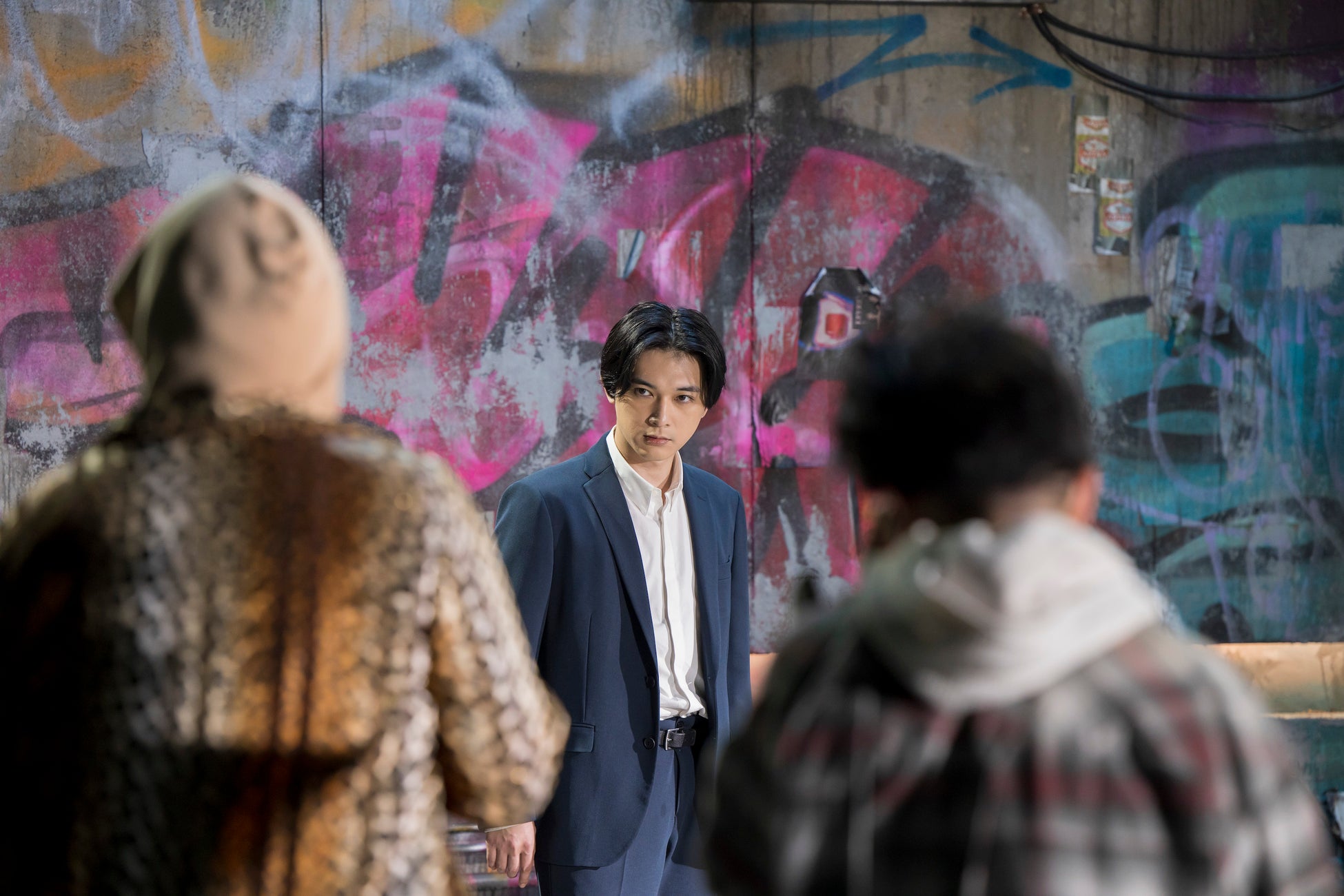 【入学傭兵】篇の撮影では、吉沢さんが複数の不良生徒からの襲撃シーンに入り込み、不良生徒の攻撃をかわしていくアクションシーンの撮影がありました。吉沢さんは、不良生徒が襲い掛かってくる方向や自分が避ける方向を入念に確認し、撮影に臨んでいました。いざアクションシーンの撮影が始まると、吉沢さんの表情はリハーサルの時と比べて、より一層真剣かつクールな表情へと一変。1テイク目からリハーサル通りの完璧な演技を見せた吉沢さんに「かっこいいなやっぱり…(笑)」と監督もつぶやくなど、華麗にアクションシーンをこなす吉沢さんに見とれていました。