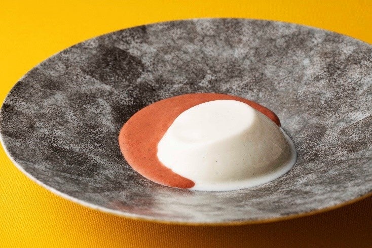 ガスパチョにはトマトとパッションフルーツを使用。トマトの酸味と「味ぽん」の酸味がマッチして、ココナッツ風味の効いたパンナコッタとよく合います。
