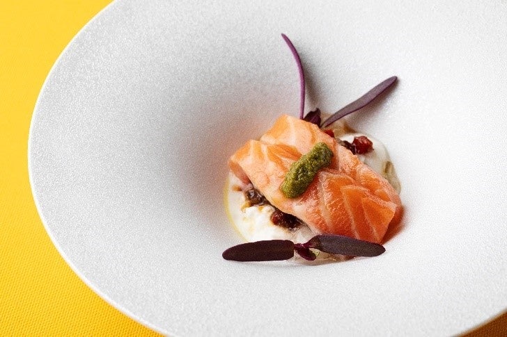 「味ぽん」入りのマリネ液でマリネしたサーモンを使用。カポナータのトマトの酸味・甘味やブラータチーズ濃厚さとの相性も良く、食べる箇所によって味が変わる楽しい一品です。